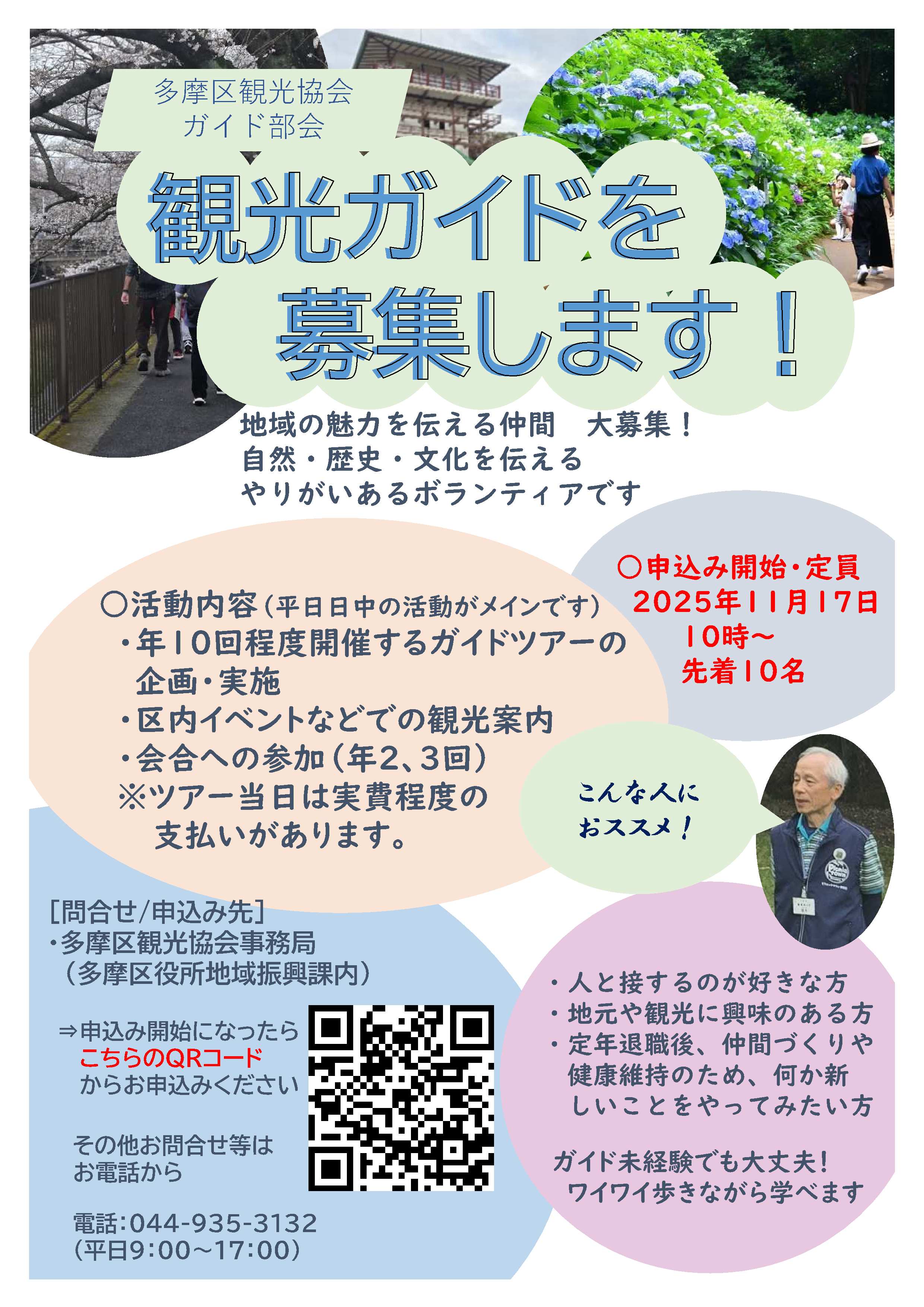 公開日時: 2025年11月12日2480 × 3507 (【11月17日申込開始】多摩区観光ガイド募集!一緒に多摩区の魅力を伝えませんか?)