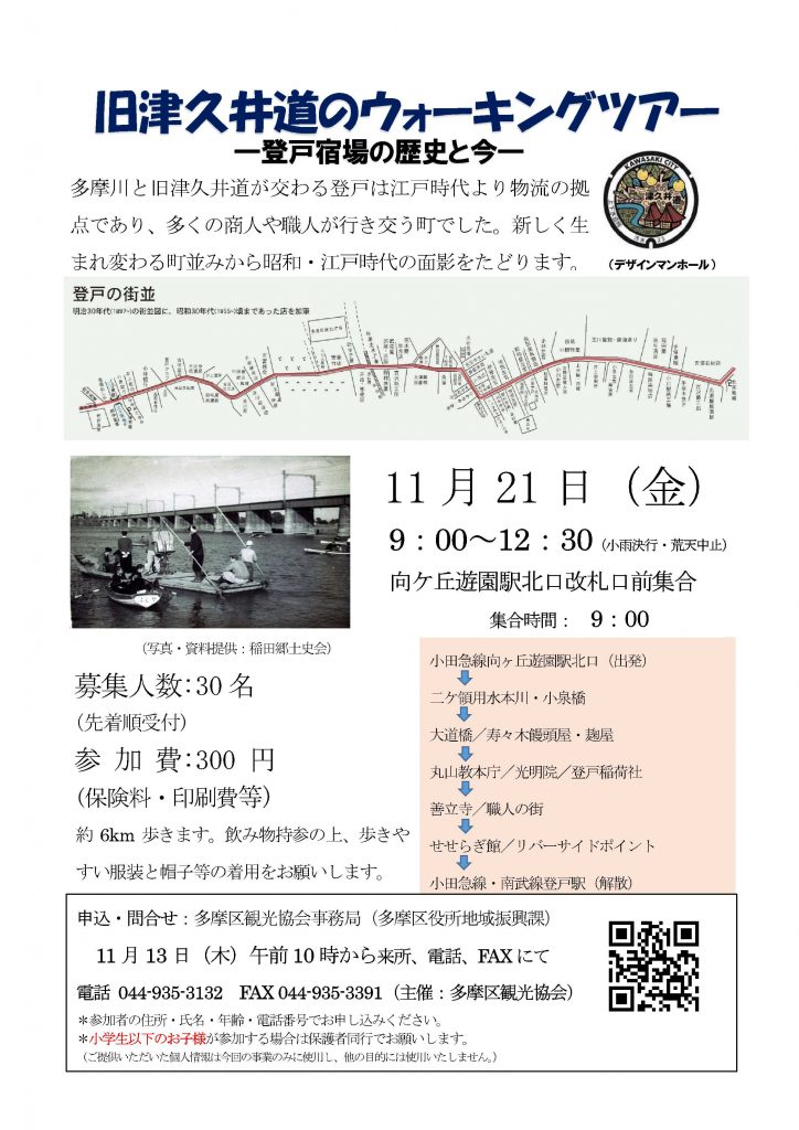 【11月13日申込開始】『11月21日:旧津久井道のウォーキングツアー ~登戸宿場の歴史と今~』参加者募集