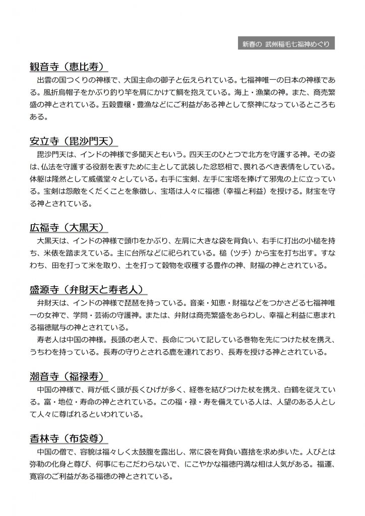 【12月8日申込み開始】1月3日『新春の武州稲毛七福神巡りツアー』参加者募集